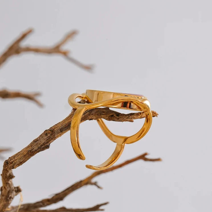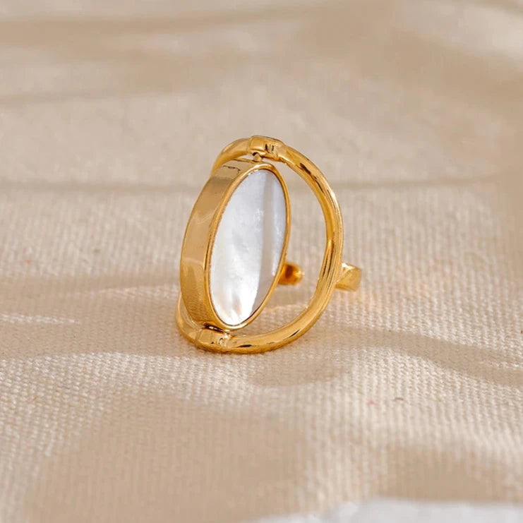 O Anel Giro Stone é uma peça contemporânea e estilosa, projetada para mulheres que valorizam a sofisticação em seus acessórios. Com design geométrico moderno, este anel é feito em aço inoxidável de alta qualidade e conta com revestimento em ouro 18K através de tecnologia PVD, proporcionando um acabamento duradouro e brilhante. A presença do material de concha dá um toque especial, tornando-o um acessório único e ideal para compor looks em festas ou ocasiões especiais.