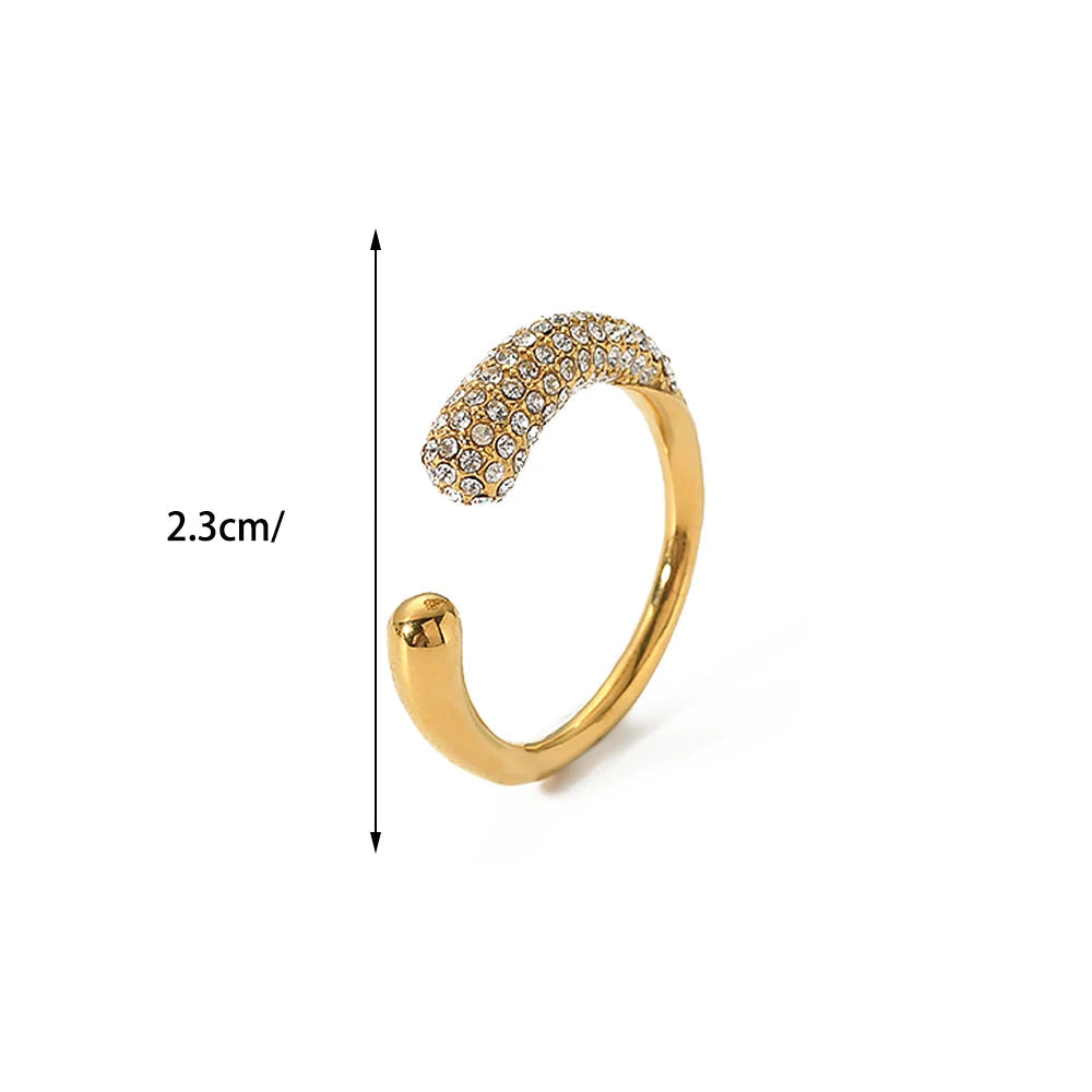 O Anel Sereis é uma verdadeira obra de arte contemporânea. Confeccionado em aço inoxidável banhado a ouro 18k, ele exala sofisticação e durabilidade. Seu design geométrico e moderno, com pedras cravejadas em canal, irradia brilho e personalidade.