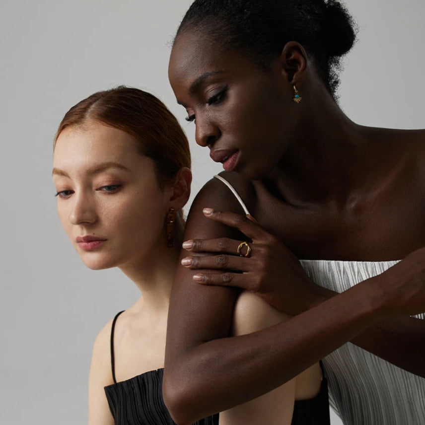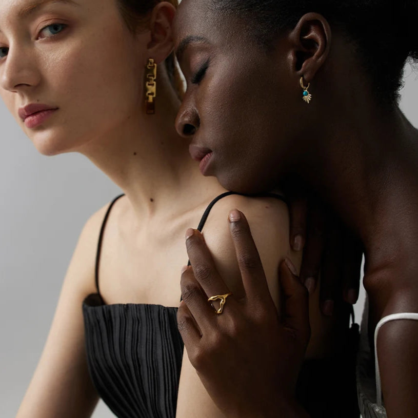 Cada par de brincos é pensado para realçar, não disputar. Do minimalismo sofisticado às formas com intenção, são peças que moldam a luz, emolduram o rosto e expressam presença — com silêncio e precisão.