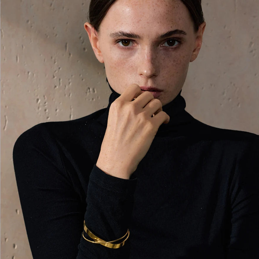 Esta é uma peça de excelência que celebra a distinção e a força. O Bracelete Coral é um acessório de primoroso design geométrico, onde a estrutura aberta (cuff) se ajusta com perfeição ao pulso, criando um visual de alto padrão. Fabricado em aço inoxidável com banho premium de ouro 18K, ele oferece requinte e um brilho sofisticado duradouro. É o acessório ideal para a mulher contemporânea que busca uma peça de presença marcante e versátil.