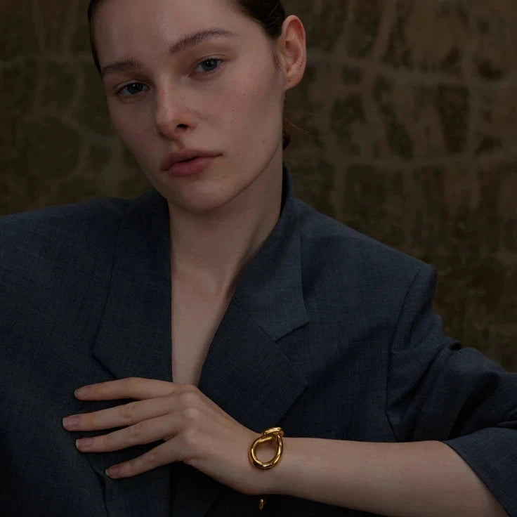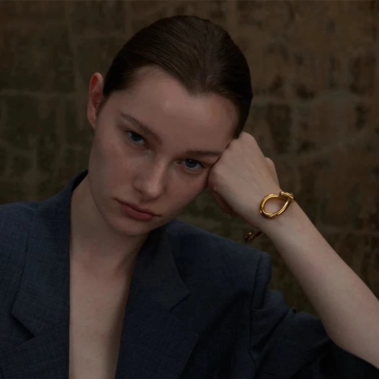 Bracelete Glory: design geométrico e acabamento dourado para mulheres que desejam modernidade e sofisticação sem abrir mão da versatilidade.