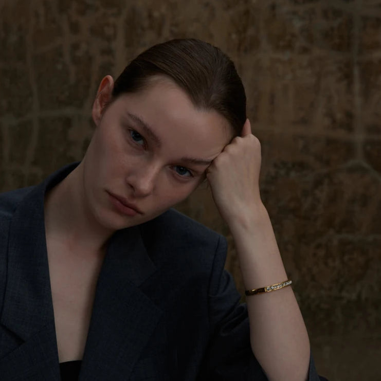 O luxo reside no brilho que ilumina o caminho. O bracelete eterna é uma ode à mulher que exala confiança e uma presença que é ao mesmo tempo marcante e discreta. Com seu design que combina a força do metal com a delicadeza do brilho, esta joia é uma declaração silenciosa de estilo. Perfeito para celebrar sua singularidade ou simplesmente para adicionar um toque de requinte ao seu dia a dia, ele se torna uma extensão de sua própria elegância.