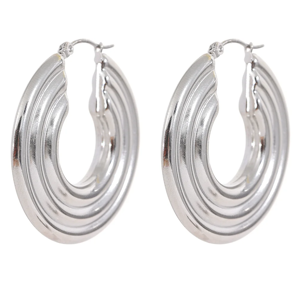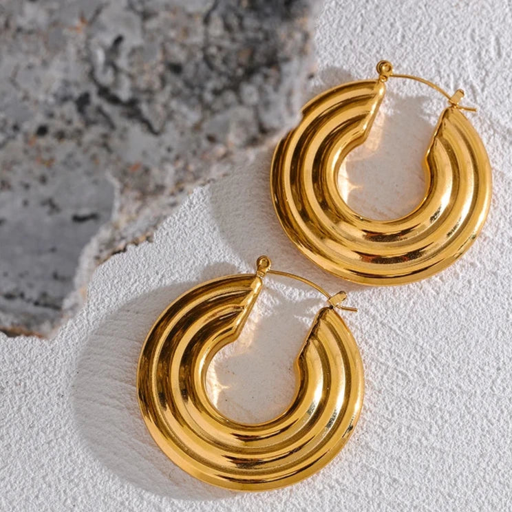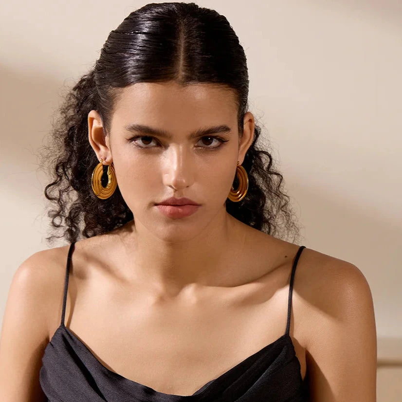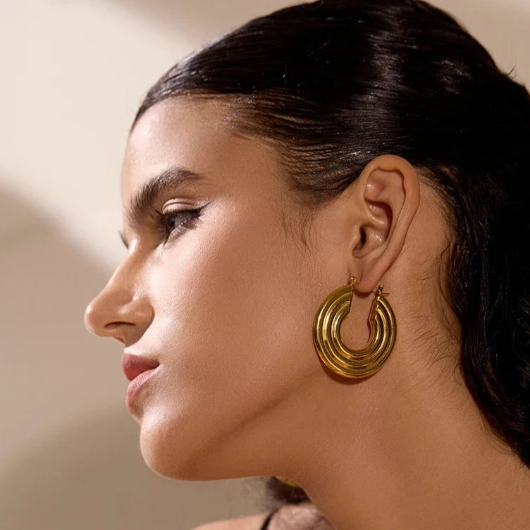 O design geométrico em argola oferece um tamanho médio ideal, equilibrando elegância e conforto.