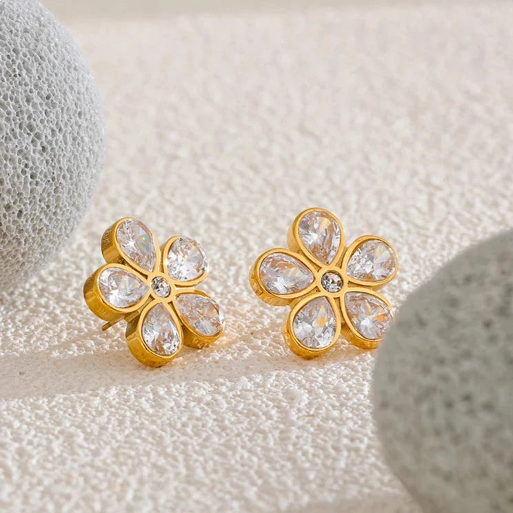 O Brinco Flor Brillo de Luna é uma joia deslumbrante que combina elegância e modernidade. Com detalhes em zircônia cúbica e estrutura em aço inoxidável banhado a ouro 18K, este brinco é ideal para quem aprecia um toque de brilho em qualquer ocasião.