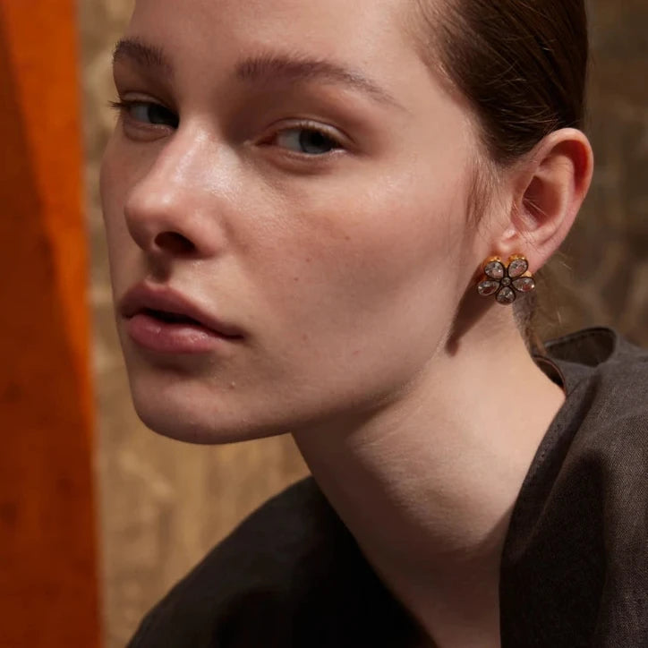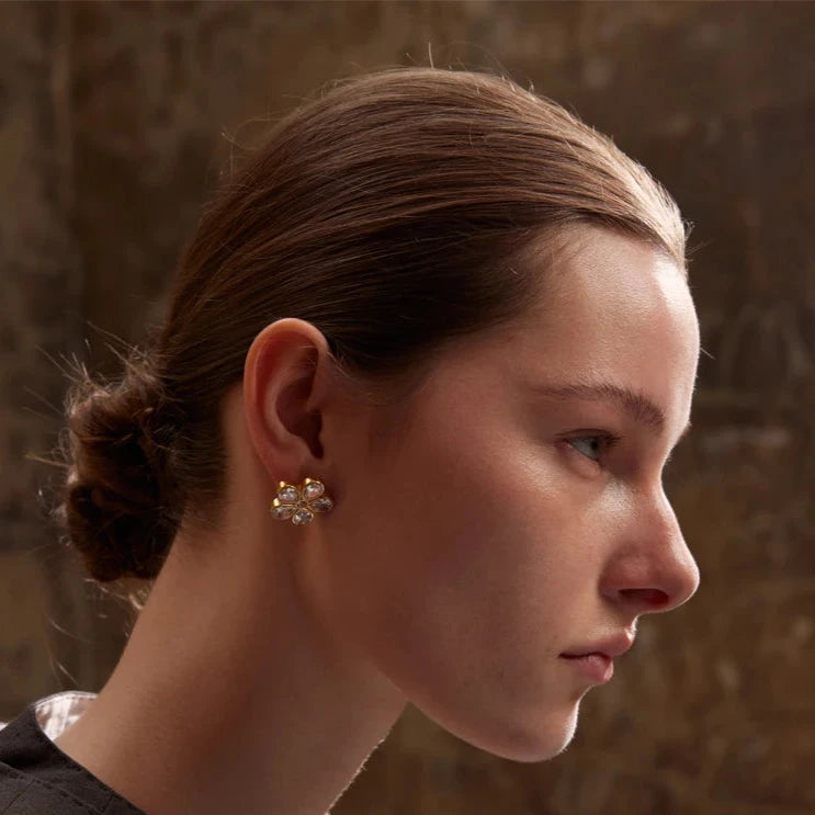Com o Brinco Flor Brillo de Luna, você adiciona um toque de sofisticação e luminosidade ao seu estilo, destacando-se em qualquer ocasião.