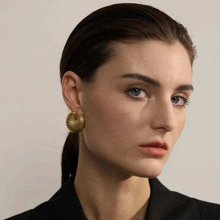 Cada par de brincos é pensado para realçar, não disputar. Do minimalismo sofisticado às formas com intenção, são peças que moldam a luz, emolduram o rosto e expressam presença — com silêncio e precisão.