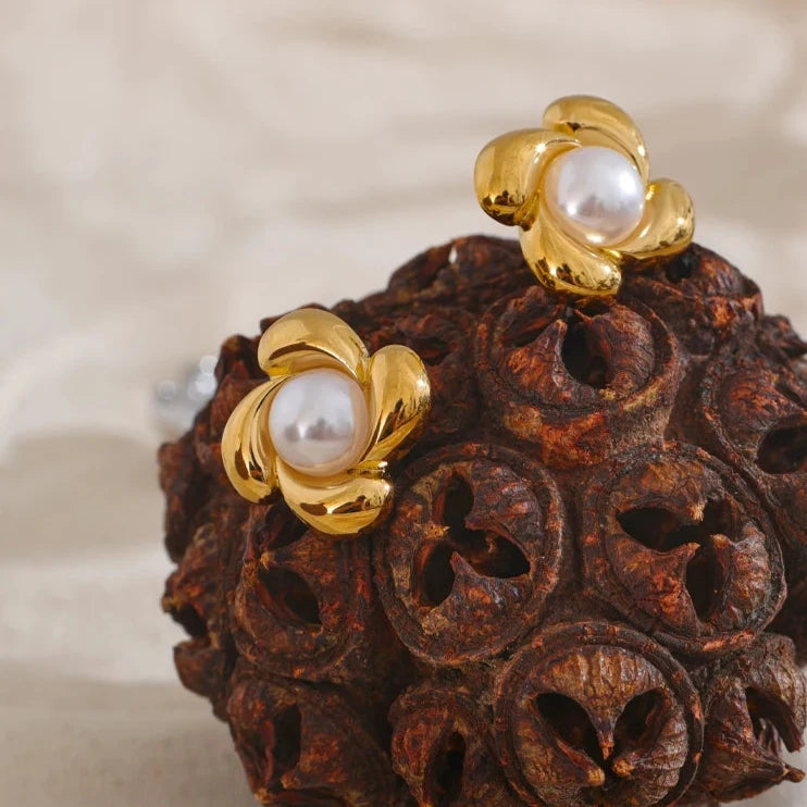 - Material: Aço inoxidável banhado a ouro 18K (PVD) e pérola simulada.
