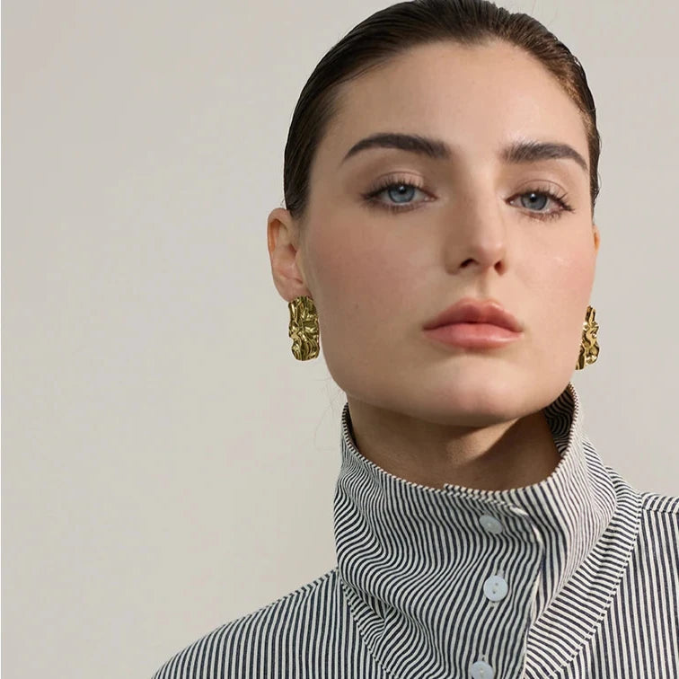 Cada par de brincos é pensado para realçar, não disputar. Do minimalismo sofisticado às formas com intenção, são peças que moldam a luz, emolduram o rosto e expressam presença — com silêncio e precisão.