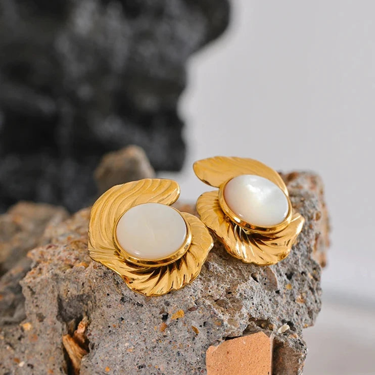- Material: Pedra e aço inoxidável com banho PVD em ouro 18K, unindo charme e resistência.