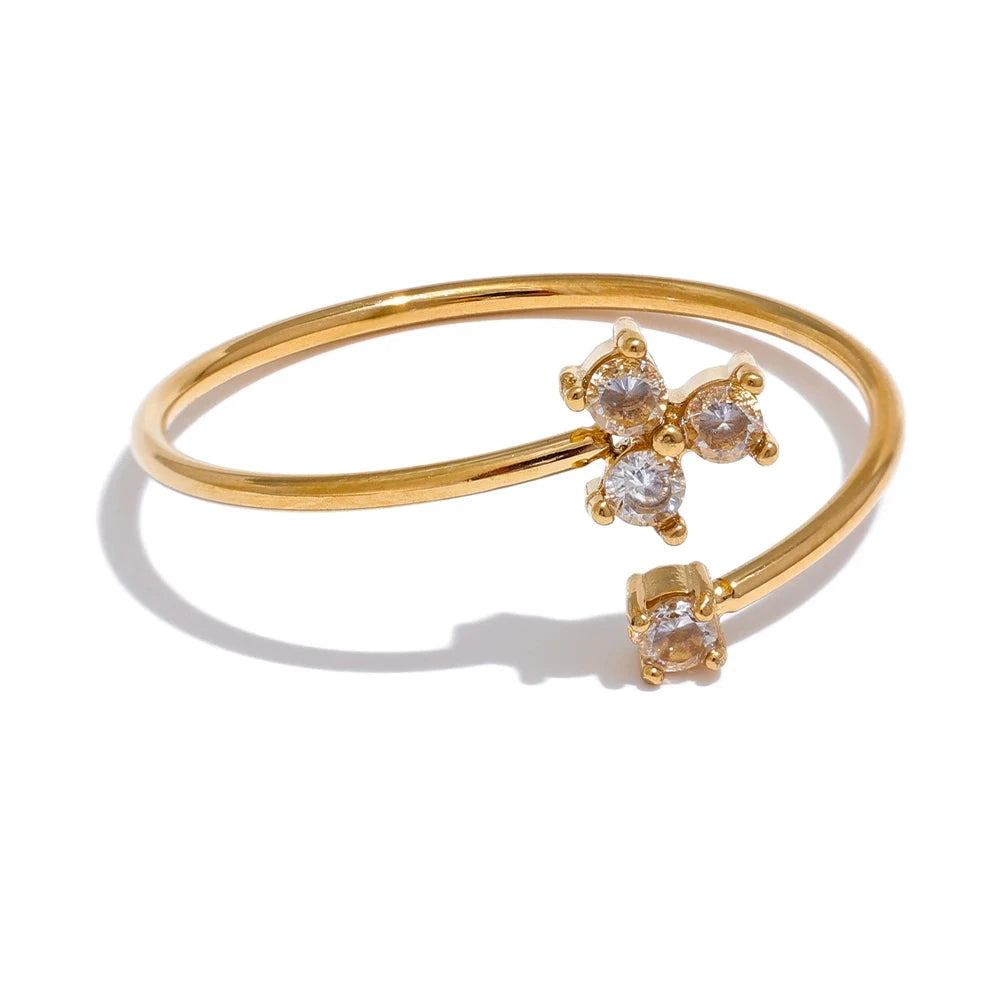 Anel Roma Neféli combina o brilho sofisticado da zircônia cúbica com a durabilidade do aço inoxidável banhado a ouro 18K, criando uma joia perfeita para mulheres que buscam estilo e modernidade. Com design geométrico e montagem em tensão, essa peça trendy é versátil e ideal para complementar looks em festas e eventos especiais.