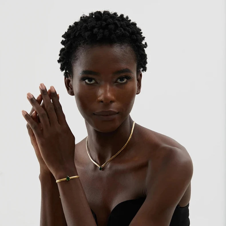 O Colar Roma Saphíri traz a união perfeita entre design contemporâneo e sofisticação. Composto por colar e pulseira, este conjunto apresenta formas geométricas marcantes e é cravejado com zircônias cúbicas de alto brilho, proporcionando um visual sofisticado e elegante para ocasiões especiais.