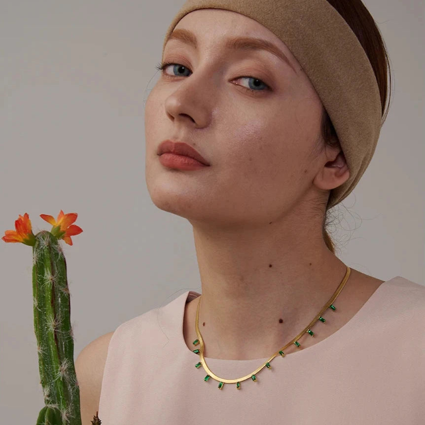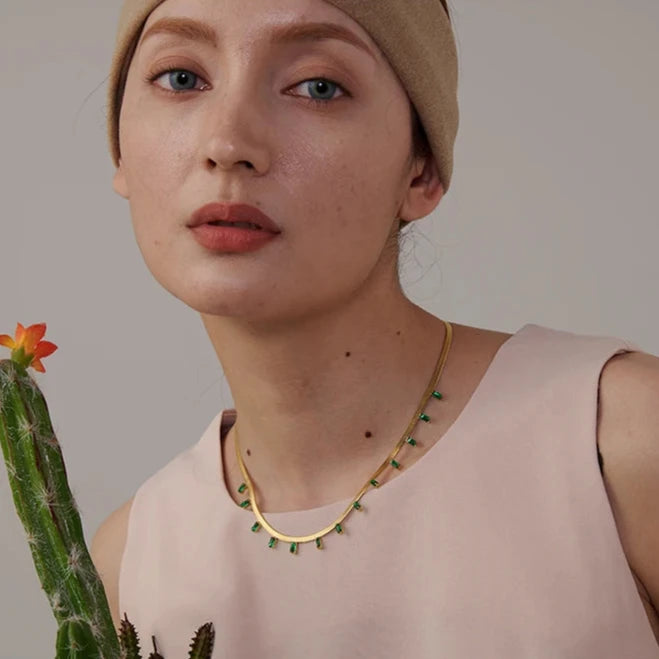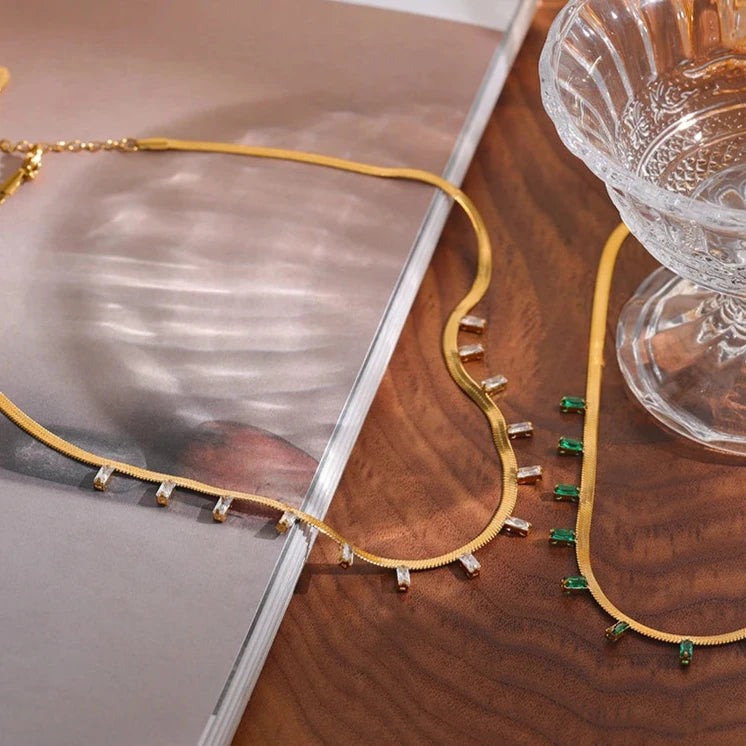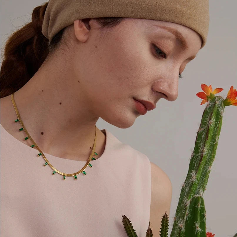 O Colar Roma Seirína é uma peça elegante e encantadora, com detalhes geométricos em zircônia cúbica que trazem um brilho sutil e sofisticado. Com acabamento em aço inoxidável e banho de ouro 18K, este colar é ideal para mulheres que valorizam estilo e modernidade.