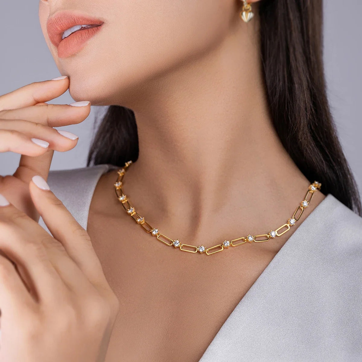 - Estilo: Colar de corrente tipo paperclip, com design elegante e moderno.