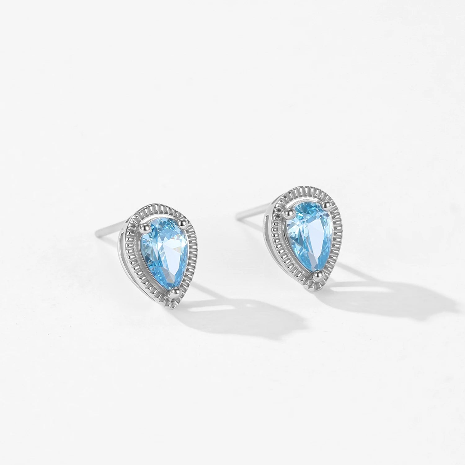 Brilho de Gota: A zircônia em forma de gota, em um tom de azul profundo, adiciona um ponto focal de cor e delicadeza, evocando a beleza do mar.