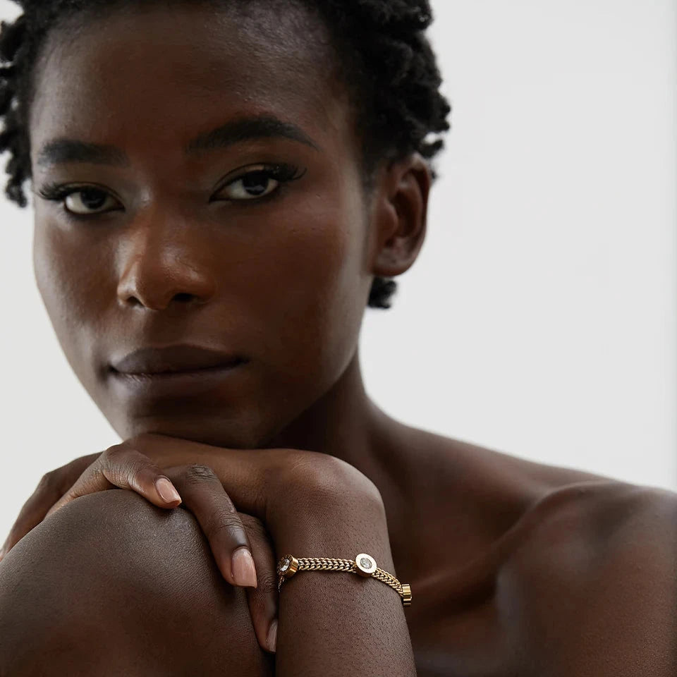 A Pulseira Auber é a escolha perfeita para quem valoriza o equilíbrio entre estilo e qualidade. Com um design geométrico moderno e um acabamento em ouro 18K, essa peça é um acessório indispensável no guarda-roupa de qualquer mulher que deseja um toque de requinte e exclusividade em seu visual. Ideal para qualquer ocasião, ela agrega beleza e valor ao look de forma discreta e elegante.