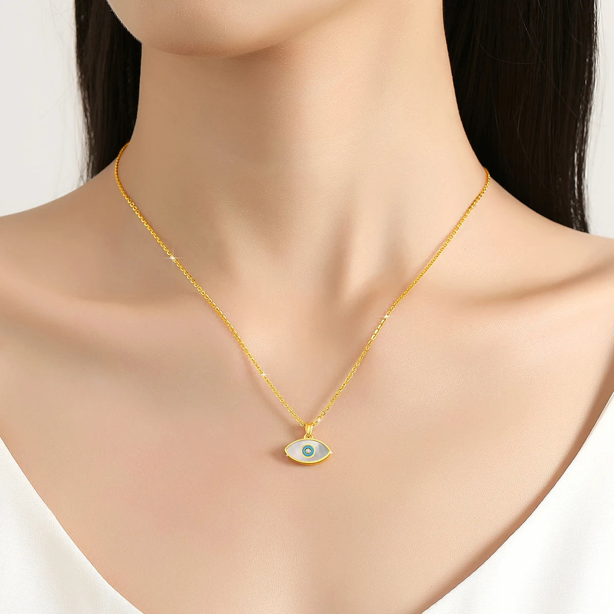 A verdadeira realeza não se ostenta; ela se manifesta na forma e na confiança de uma presença imponente e serena. O colar Majestade Ocular Serena é uma ode à mulher que governa o próprio destino, com uma joia que reflete sua nobreza interior. Com o design em formato de olho e a delicadeza da madrepérola, esta peça é perfeita para a mulher que busca a sofisticação que não precisa de validação externa. Ela não é apenas um adorno, mas um lembrete silencioso de que sua autoridade é inata.