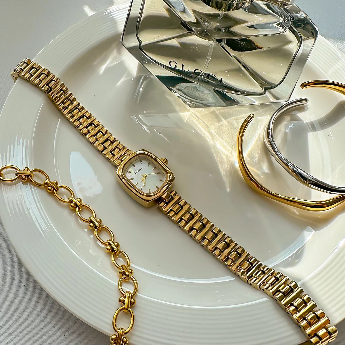 • Design Contemporâneo: A estética minimalista com traços femininos cria uma harmonia visual que complementa o seu estilo com distinção.