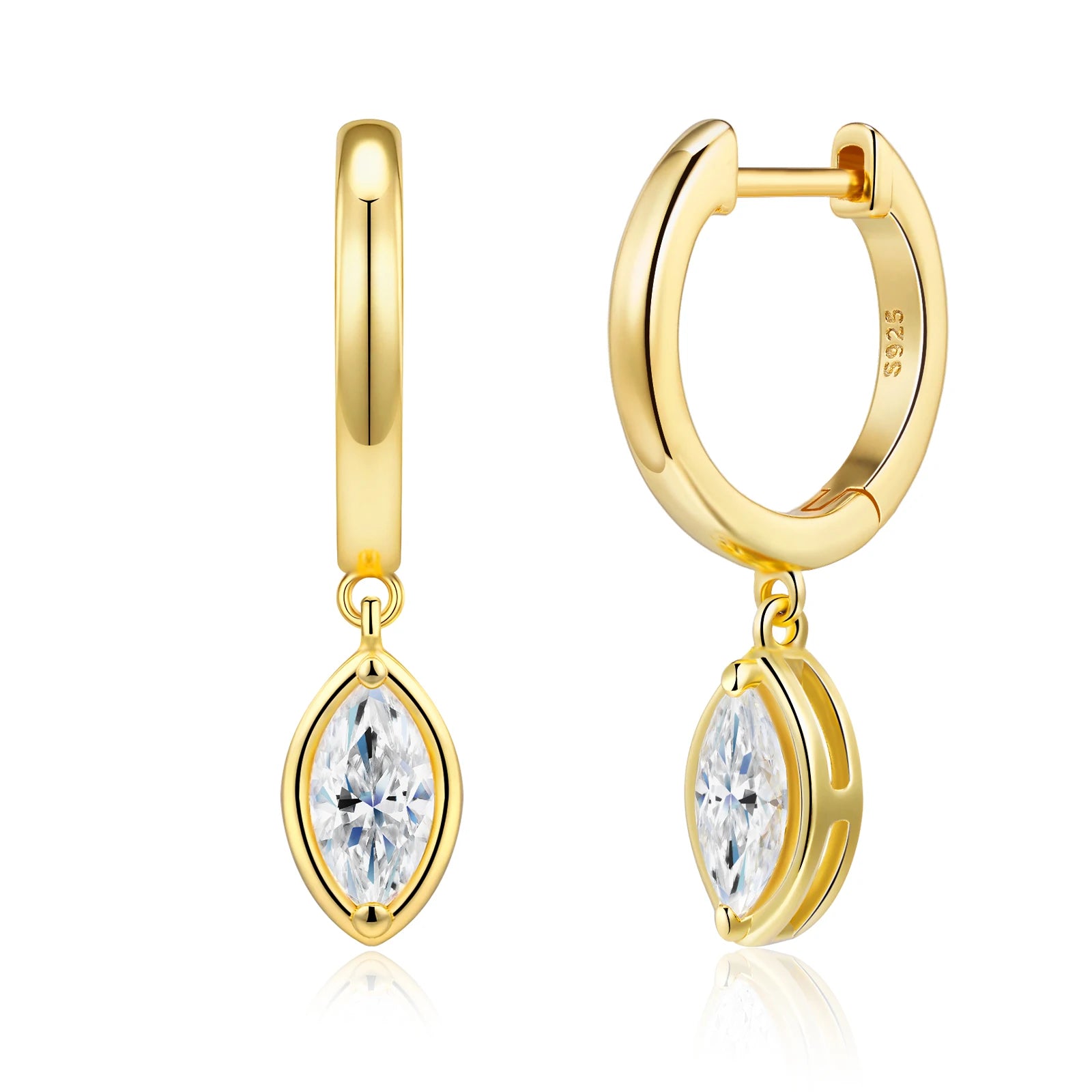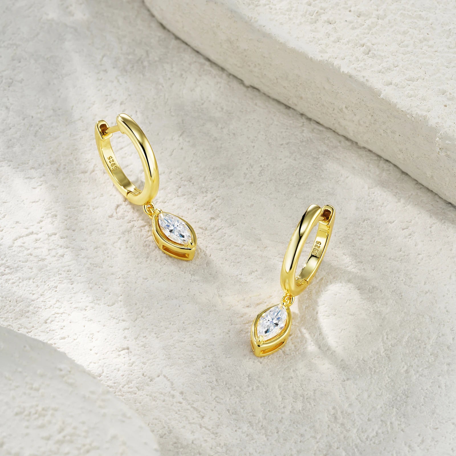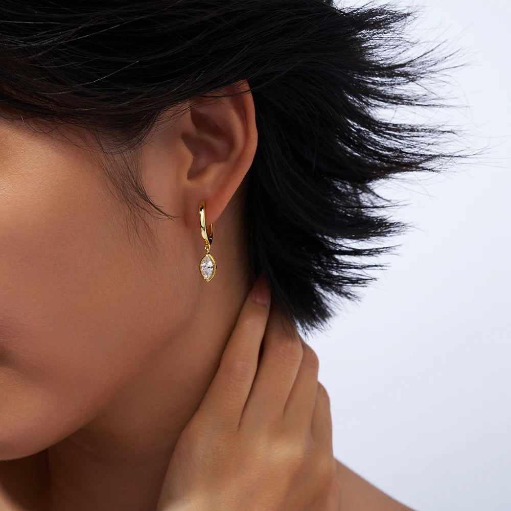 Brinco Marévia da coleção Eterna destaca a elegância clássica com um toque moderno e atemporal. Produzido em prata 925 com banho de ouro 18K, este brinco tipo gota apresenta moissanitas lapidadas em formato marquise, reconhecidas pela intensidade do brilho e certificação GRA. Leve, confortável e sofisticado, é uma escolha perfeita para presentes significativos e para valorizar ocasiões especiais.