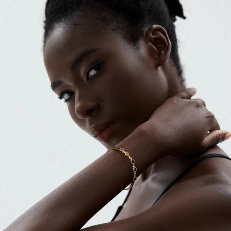 Com seu design marcante e brilho sutil, o Bracelete Brilho Céleste é a escolha perfeita para adicionar um toque de luxo moderno ao seu visual. Uma joia versátil que combina qualidade e estilo.