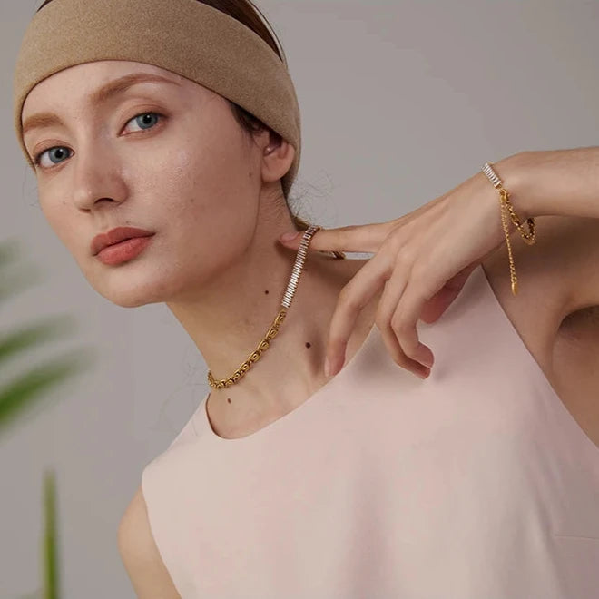 - Conteúdo: Conjunto de joias que inclui colar e pulseira, para um visual completo.