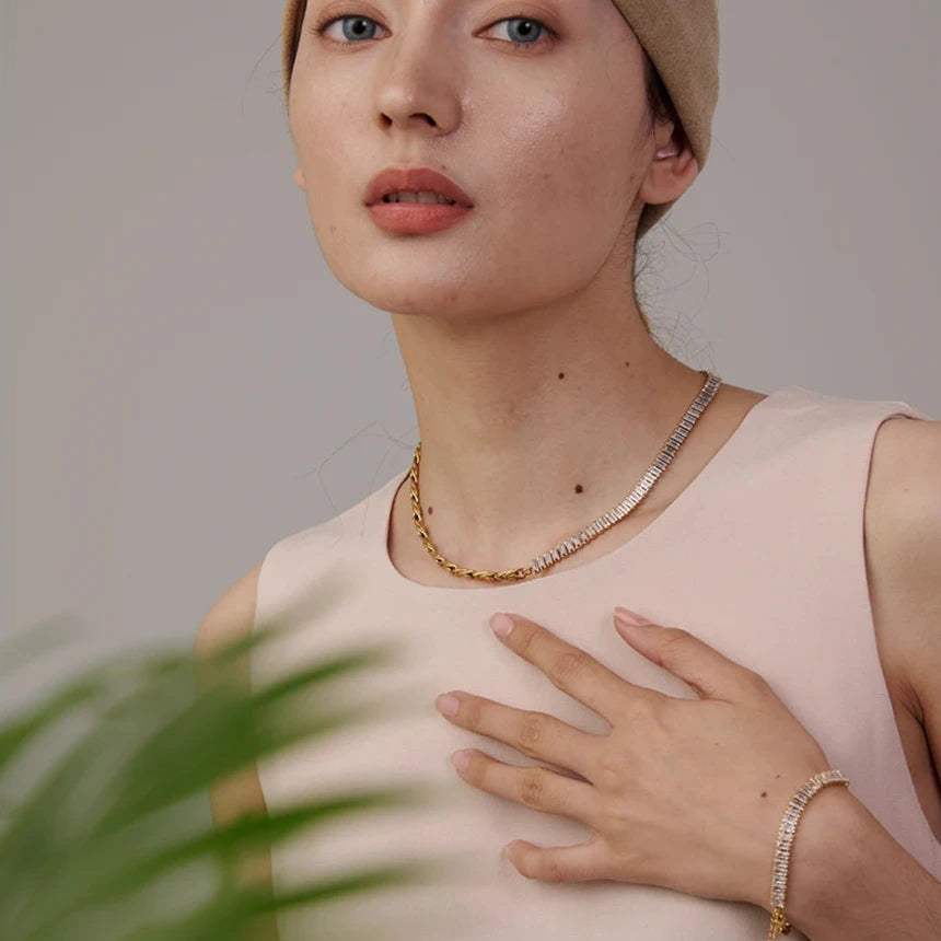 O conjunto Colar Conto de Rubi é ideal para combinar com vestidos clássicos ou looks minimalistas, deixando o brilho das pedras ser o destaque. Para um toque ainda mais refinado, adicione brincos de zircônia para completar o visual.