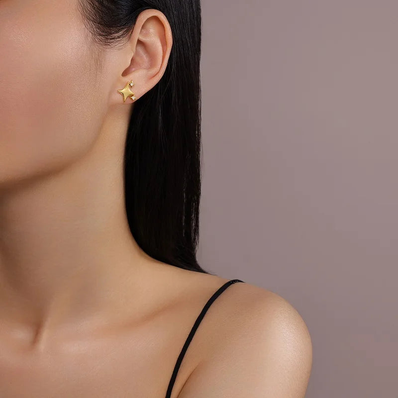- Estilo: Brincos de Tarraxa, com formato de estrela, ideais para um visual minimalista e contemporâneo.