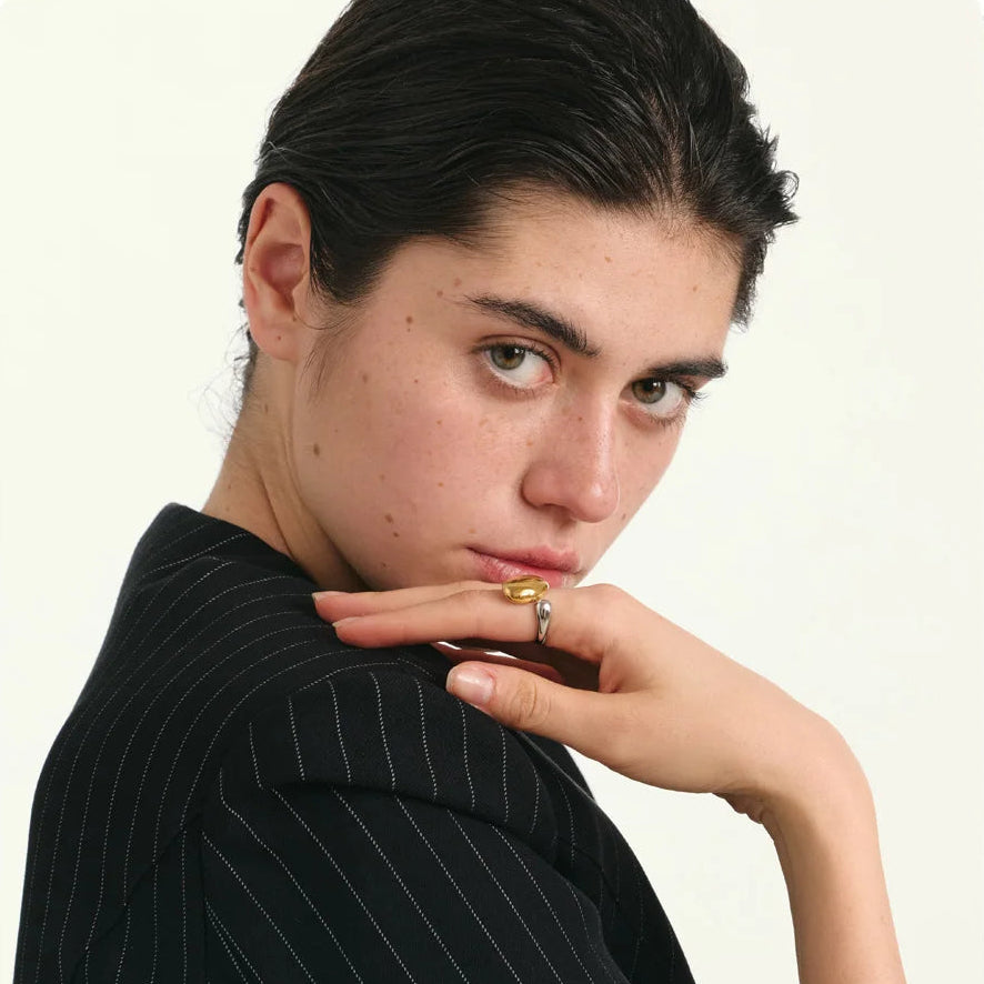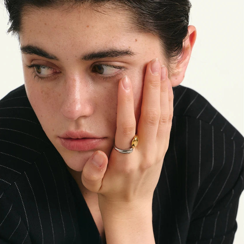 Descrição O Anel Gota equilibra a força do Aço 316L com a suavidade do Ouro 18K em uma harmonia perfeita entre o solar e o lunar. Uma peça da linha Fusion que celebra a elegância de transitar entre o clássico e o moderno com autonomia.