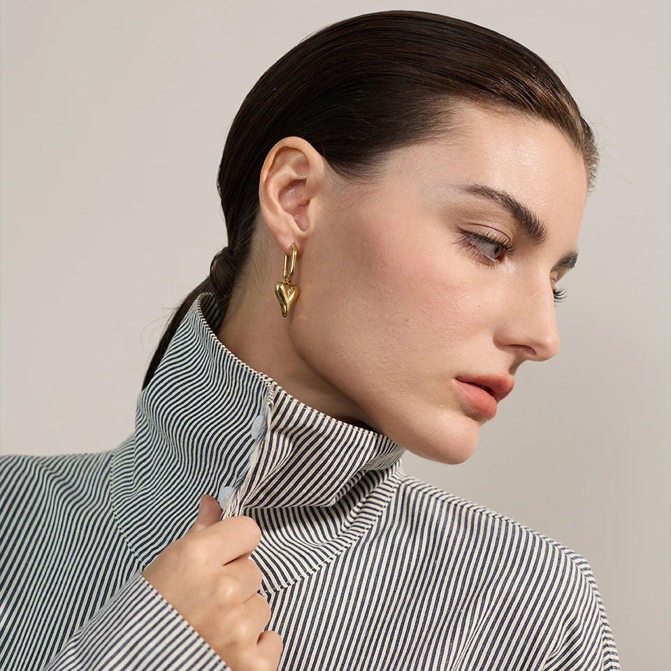 O Brinco love é a manifestação da elegância contida para a mulher que busca peças que não se explicam, se sentem. Forjado em aço inoxidável 316L, resistente à água, este brinco pendente de design elegante e formato de coração reforça a longevidade e a precisão no detalhe. Com o acabamento PVD em Ouro 18K, ele veste o seu significado, afirmando o luxo pela autonomia e qualidade duradoura.