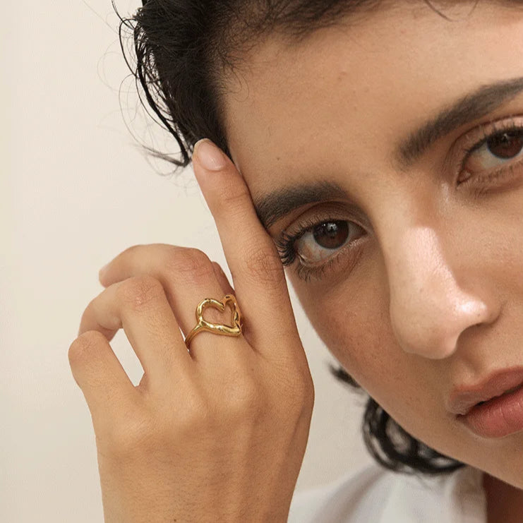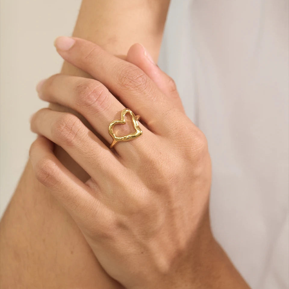 Esta é uma peça de excelência que celebra a distinção através do simbolismo mais puro. O Anel Amore é uma joia de primoroso design, onde o coração vazado traduz sofisticação e afeto em sua forma mais autêntica. Confeccionado em aço inoxidável e banhado a ouro, ele se adapta com requinte às mãos, oferecendo durabilidade e um toque de alto padrão que complementa a sua elegância diária.