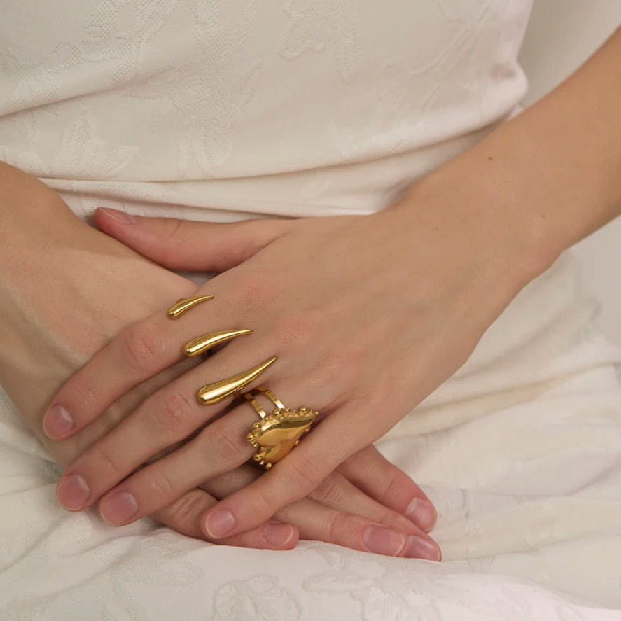 O luxo encontra a inovação em um design que redefine a forma de usar uma joia. O anel Anel Garra Duplo é uma ode à mulher que exala confiança e uma presença que é ao mesmo tempo marcante e discreta. Com seu design geométrico e a elegância do ouro, esta joia é uma declaração silenciosa de estilo. Perfeito para celebrar sua singularidade ou simplesmente para adicionar um toque de requinte ao seu dia a dia, ele se torna uma extensão de sua própria elegância.